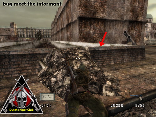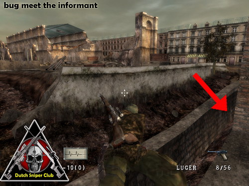 Kruip via het puin op de rand.